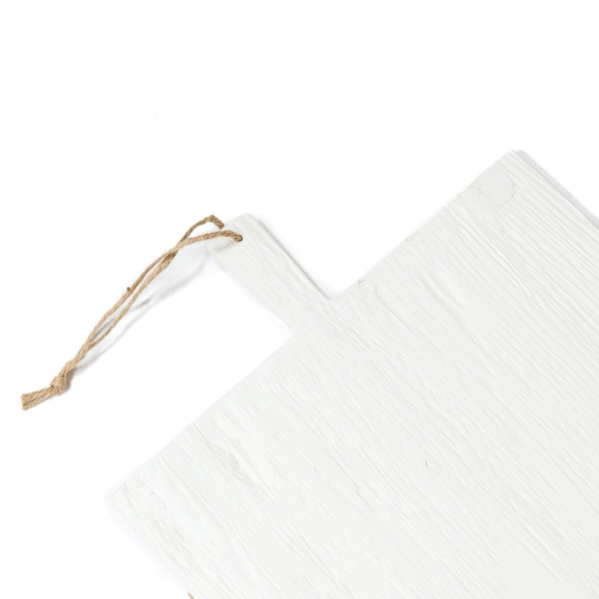 Questo tagliere in legno di recupero è il tuo nuovo punto di riferimento per tutte le esigenze di servizio, accoglienza e decorazione. Per un tocco moderno, il tagliere è stato rivisitato in una vivace tonalità di bianco cerato, un sicuro spunto di conversazione.