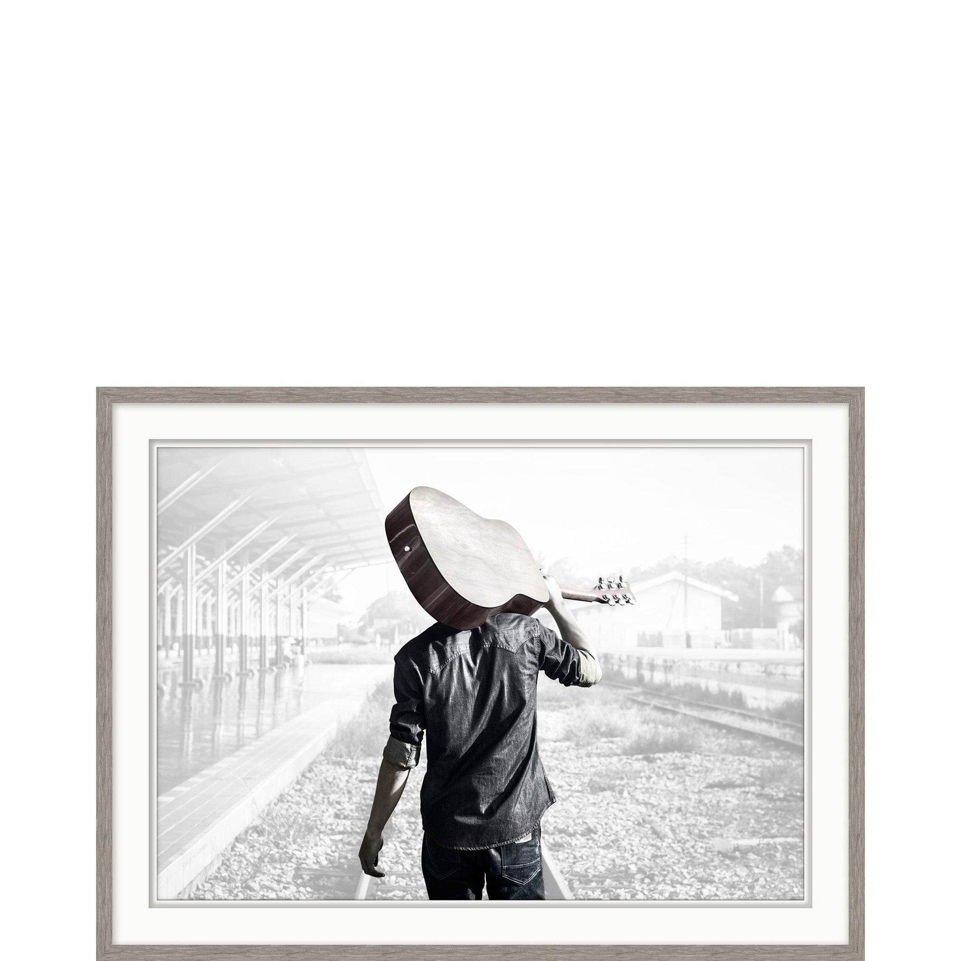 L'immagine "L'uomo con la chitarra sulla spalla" è stampata su carta Giclée per un dettaglio incredibile e una lunga durata, ed è incorniciata con un passepartout flottante e smussi inversi per un tocco di raffinatezza in più. La carta opaca aggiunge uno sfondo discreto che mette in risalto l'immagine.
